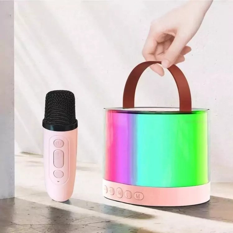 اسپیکر و بلندگو بلوتوث قابل حمل بچه ها عاشق آواز خوندن و مهمونی هستن.پس این اسپیکر بلوتوثی ، بهترین هدیه ای هست که میتونین بهشون بدین! این اسپیکر بلوتوثی با رنگهای شاد و بسته بندی جذابش، یه هدیه ی فوق العاده برای بچهها تو هر سنیه. چه تولد باشه، چه عید نوروز، یا هر جشن دیگهای، این اسپیکر بلوتوثی میتونه حسابی خوشحالشون کنه. این دستگاه، طراحی سرگرم کننده و قابل حمل داره. با 6 تا چراغ LED رنگی و 5 تا صدای یی، هر وقت و هر جا که بخوان، میتونن ازش لذت ببرن. یه بند چرمی هم داره که بچهها بتونن راحت هر جا با خودشون ببرنش. برای مهمونیهای خونوادگی، گردش بیرون، ورزش، دورهمی با دوستاشون و هر جای دیگهای که فکرشو بکنین عالیه! صدای این اسپیکر بلوتوثی با اینکه اندازهی کوچیکی داره، خیلی قوی و باکیفیتئه. بلندگوهای قوی و پردازندهی دیجیتال صدا داره که صداش رو واضح، فراگیر و متعادل میکنه. با یه باتری قدرتمند، تا 5-6 ساعت میتونن بدون وقفه باهاش بخونن و خوش بگذرونن. استفاده ازش خیلی راحته و وزن کمی داره که برای بچهها عالیه. فقط کافیه میکروفون و بلندگو رو روشن کنن، خودشون به هم وصل میشن. این اسپیکر بلوتوثی قابلیت اتصال به بلوتوث 5.1 داره که خیلی سریع وصل میشه و تا مسافت دور هم میتونه وصل بمونه. به کارت TF، فلش USB و کابل AUX هم وصل میشه و با گوشیهای هوشمند، تبلتها، لپ تاپها و کامپیوترها همخوانی داره