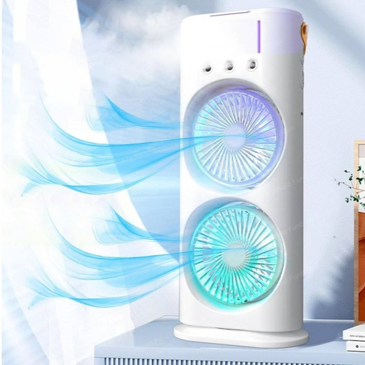پنکه رو میزی مه پاش دوقلو مدل Doubl Spray Fan - لذت خنکی دوچندان ( با اطلاع از قیمت پنکه مه پاش انتخابی بهتر داشته باشید. ) تابستانهای گرم و شرجی، نیاز به یک همراه خنککننده را بیش از پیش احساس میشود. این محصول، با طراحی نوآورانه و قابلیتهای متنوع، راهکاری مناسب برای خنک شدن در محیطهای کوچک و یا حتی در سفر و کمپینگ است. این دستگاه جمع و جور و کارآمد، پمی باشد با ایجاد مه و باد خنک، هوای اطراف شما را مطبوع و دلپذیر میکند